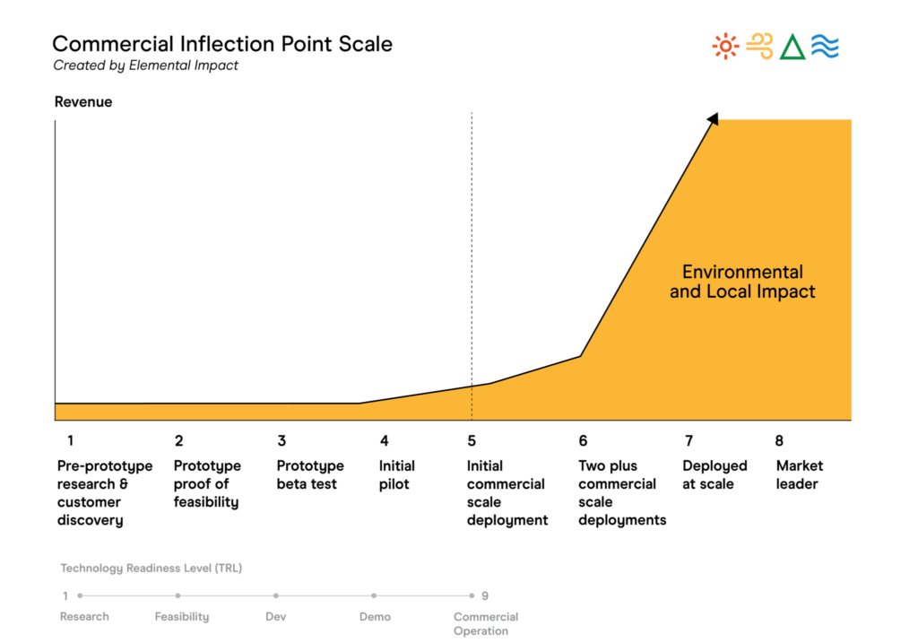 Elemental Impact has developed a framework for understanding how climate technology companies actually grow and what it means to succeed at each stage—the Commercial Inflection Point Scale.